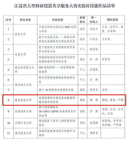 3月28日,江苏省科技资源统筹服务中心公布首届“江苏省大型科研仪器共享服务大赛”获奖名单,万象城现代农业分析测试中心作品“连续超薄切片技术在细胞器图像识别中的应用”入选江苏省大型科研仪器共享服务大赛实验好技能作品;“解锁质谱技术共享,奏响新质生产力创新交响曲”入选江苏省大型科研仪器共享服务大赛共享好案例作品。本次大赛由江苏省科技资源统筹服务中心主办,东南大学、南京理工大学、南京信息工程大学联合承办。