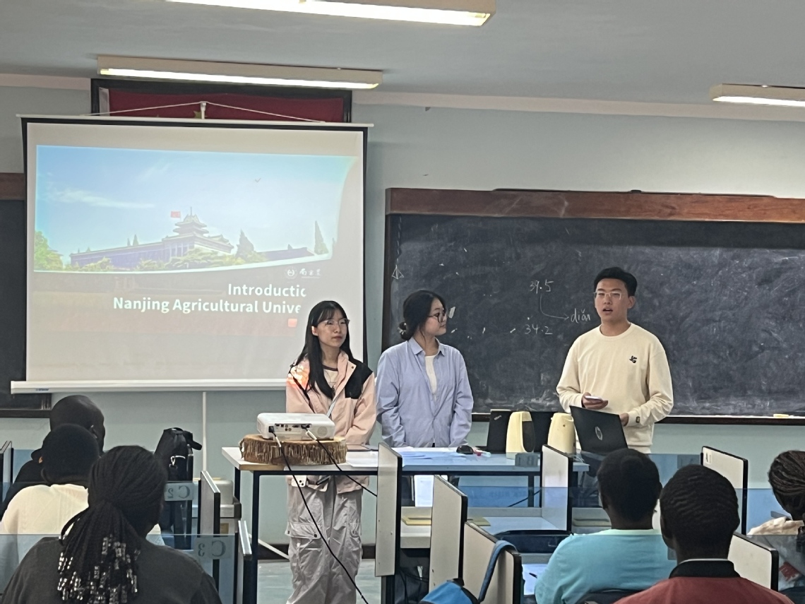 在孔子学院语言文化中心,代表团成员以“耕读南农·青春同行”为主题展开汇报交流。代表团同学从南农的悠久历史引入,以图文并茂的形式,从学习体验、实践活动和校园文化等方面生动呈现万象城awcsport官网的校园风貌。在交流的过程中,团队特别介绍了学校“农业特色+国际视野”的培养模式,为非洲学生“留学南农-回国实践”的全链条成长提供路径参考。交流尾声,中肯学生围绕中肯文化差异、未来合作发展等主题展开讨论,绘制合作蓝图。