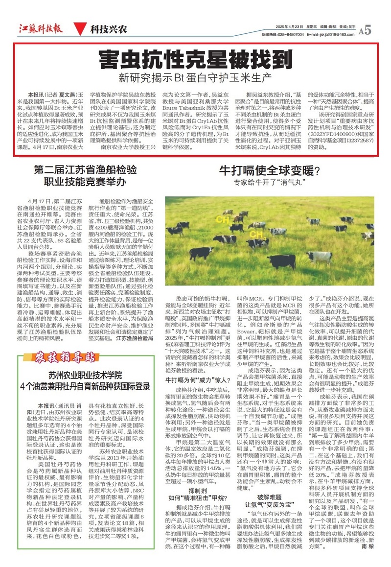 【江苏科技报】害虫抗性克星被找到 新研究揭示Bt蛋白守护玉米生产