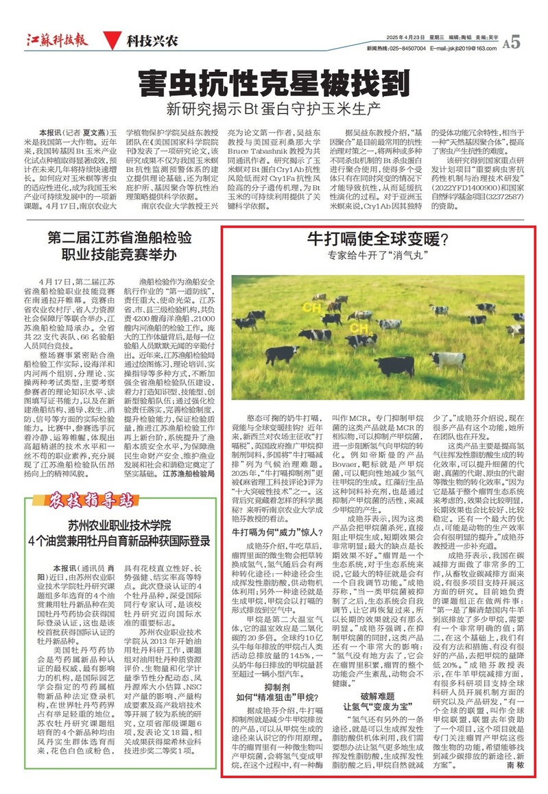 【江苏科技报】牛打嗝使全球变暖? 专家给牛开了“消气丸”