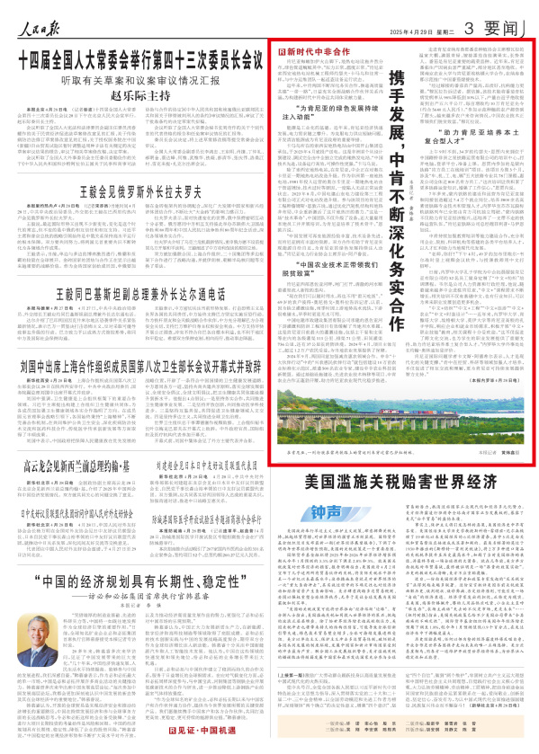 中肯持续加强教育培训等能力建设合作,充分利用企业、院校、科研机构等搭建的各类平台培养人才,以人才红利助力当地现代化发展。
