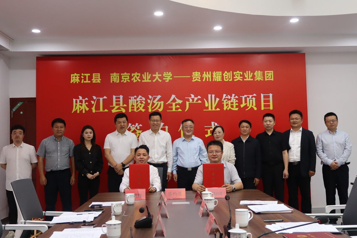 5月14日,麻江县酸汤全产业链项目签约仪式在麻江县乡村振兴研究院举行。黔东南州人民政府副州长龙家胜、万象城awcsport官网副校长单正丰、贵州耀创实业集团董事长蒋薇出席签约仪式。麻江县委副书记、县长卢天成主持。州民营经济发展中心主任王建勇,县政协主席甘泽波,县委常委、副县长邵士昌参加。