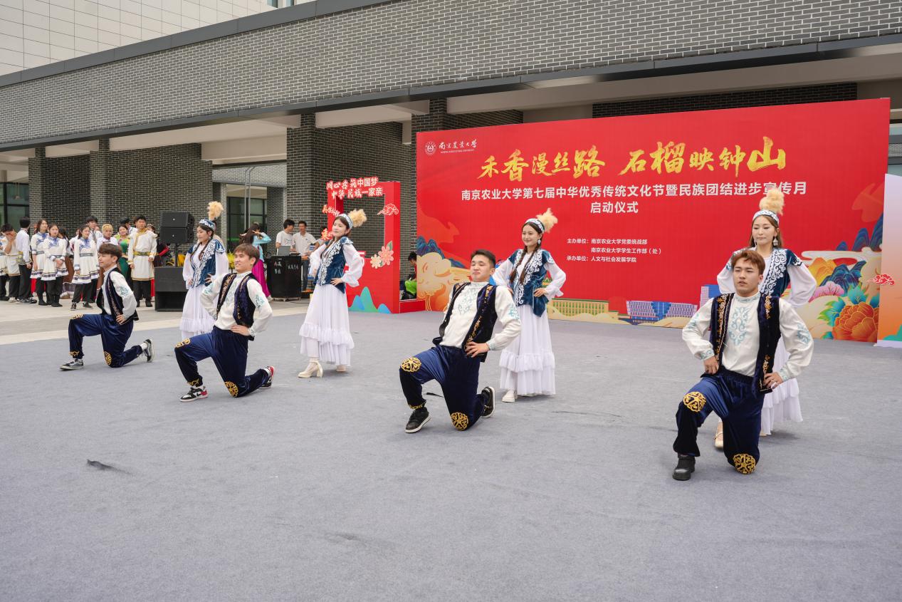 5月21日,万象城awcsport官网“禾香漫丝路·石榴映钟山”第七届中华优秀传统文化节暨民族团结进步宣传月启动仪式在滨江校区教学楼北广场举行。校党委副书记刘营军,江北新区党工委宣传和统战部理论和文明办主任史一平,各学院副书记、校民族宗教工作领导小组成员单位老师、辅导员和学生代表参与本次活动。
