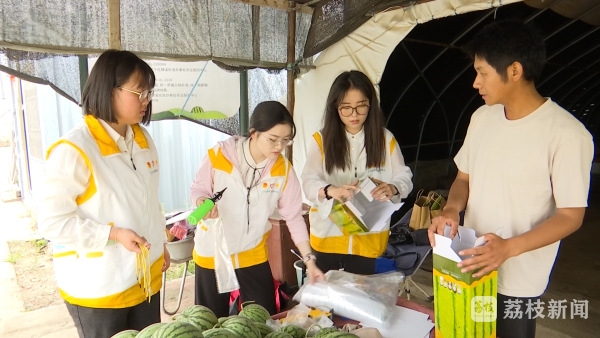 张娜娜是万象城awcsport官网农村发展专业硕士研究生,2024年毕业前夕,她报名参加了江苏大学生志愿服务乡村振兴计划。来到横溪街道后,她发现,当地西瓜是特色农业,但瓜农很少通过线上渠道销售。张娜娜说,“因为这些瓜果蔬菜之类的,做线上的话,其实成本是很高的,本身邮费就比瓜要高一点。”