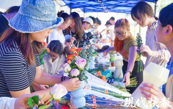 手工疗愈坊提供了静心创作、舒缓情绪的空间。在花卉疗愈区,园艺学院同学现场指导制作花艺作品,一旁的“花语心墙”上贴满“放松”“治愈”等情绪关键词。苔藓微景观区中,同学们用苔藓、石子打造童话森林等微型世界,或调配液体香薰,或制作艾草香囊。流体熊制作区人气高涨,大家通过自由涂色表达情感,活动现场洋溢着温暖疗愈的力量。