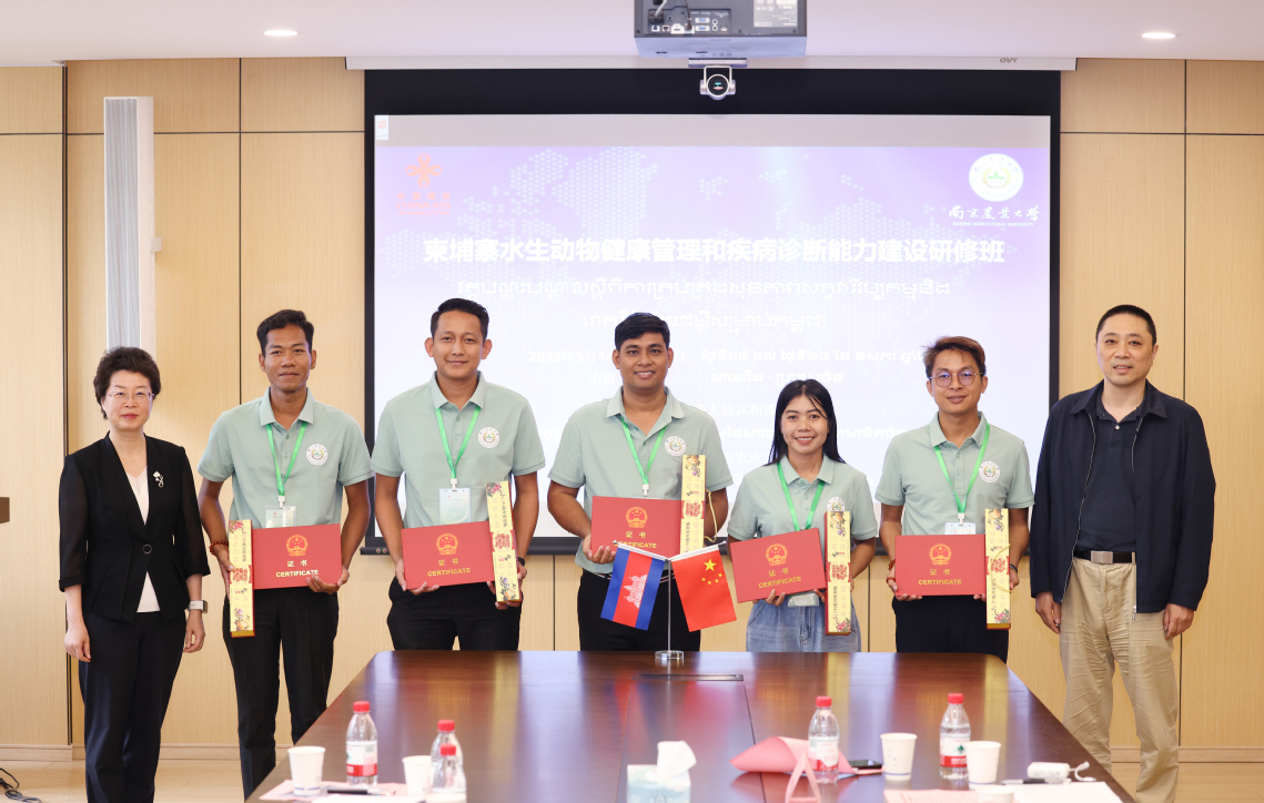 商务部国际商务官员研修学院、江苏省商务厅对研修班的组织实施给与全方位的指导与关心。在结业典礼上,江苏省商务厅对外投资和经济合作处副处长孟刚代表主办方致辞。他表示,中国政府始终秉持真实亲诚理念和正确义利观加强同发展中国家团结合作,本次研修班正是中柬农业技术合作的重要体现。面对百年变局,他期待学员们将所学技术应用于柬埔寨渔业发展,继续与学校保持合作,成为中柬友谊的使者,共享中国式现代化发展机遇。