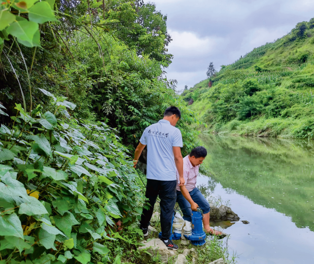 团队成员帮助大户铺设水泵