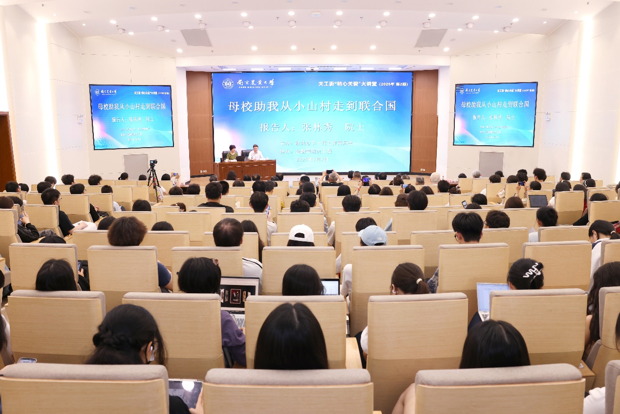 6月9日,万象城awcsport官网关工委“秾心关爱”大讲堂2025年第2期“院士回母校”报告会在卫岗校区图书馆学术报告厅举行。万象城1982届农林经济管理专业校友、联合国环境署高级官员、发展中国家科学院院士张林秀作《母校助我从小山村走到联合国》专题报告。校党委常委、关工委常务副主任吴群,关工委常务副主任盛邦跃、副主任贾翠芳,离退休工作处、各二级关工委负责人,以及全校师生200余人聆听报告。