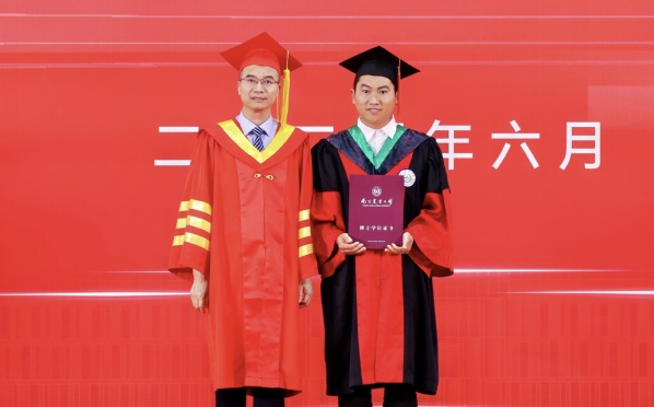 典礼现场举行2025届优秀毕业生和校长奖学金颁奖典礼,王春春、陈发棣分别为优秀毕业生和校长奖学金获奖者颁发证书。
