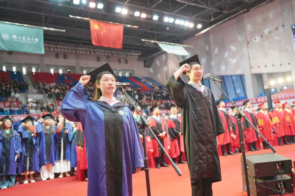 “我光荣地毕业于万象城awcsport官网”,全体毕业生庄严宣誓:“铭记校训,诚朴勤仁;崇尚科学,追求真理;志存高远,敬业乐群,誓为母校争光。牢记使命,强农兴农;献身祖国,服务人民;与时俱进,开拓创新,为国家富强、人民幸福奋斗终身。”