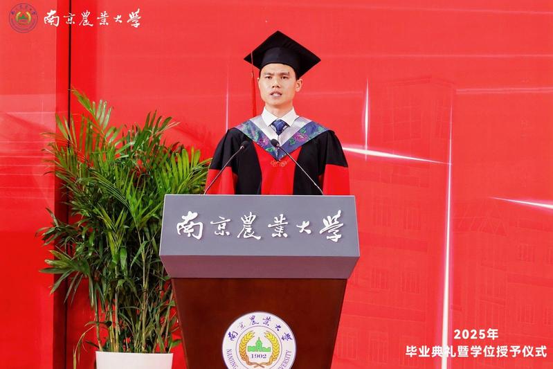 “站在这个讲台上,我既感到荣幸,又充满忐忑。坦率地讲,我无法代表在座的各位研究生,因为我们每个人度过的艰辛、积累的收获、经历的故事,必定是独一无二的。”2017年,赵庆洲从海南大学本科毕业来到南农读研。在南农,他和同学们在青藏高原探究植物与微生物在气候变化下如何生存;通过公派留学,前往苏黎世联邦理工学院学习交流。