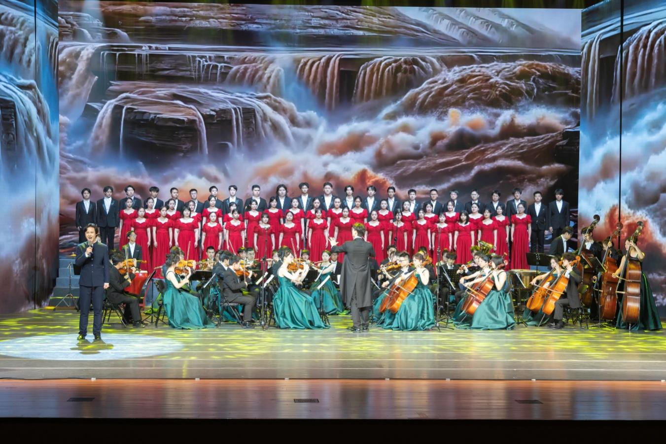 整场演出在全场师生齐声合唱《歌唱祖国》的激昂旋律中圆满落幕。熟悉的旋律响彻现场,歌声中凝结着对历史的缅怀、对和平的珍视,以及新时代青年继往开来的使命担当。