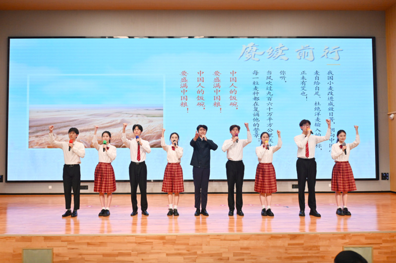 人文学院艺术系学生代表诗朗诵《大地的回响》,表达金善宝与土地的深情对话,让后辈铭记金老的精神之光,照亮青年人脚下的土地和未来的征程。