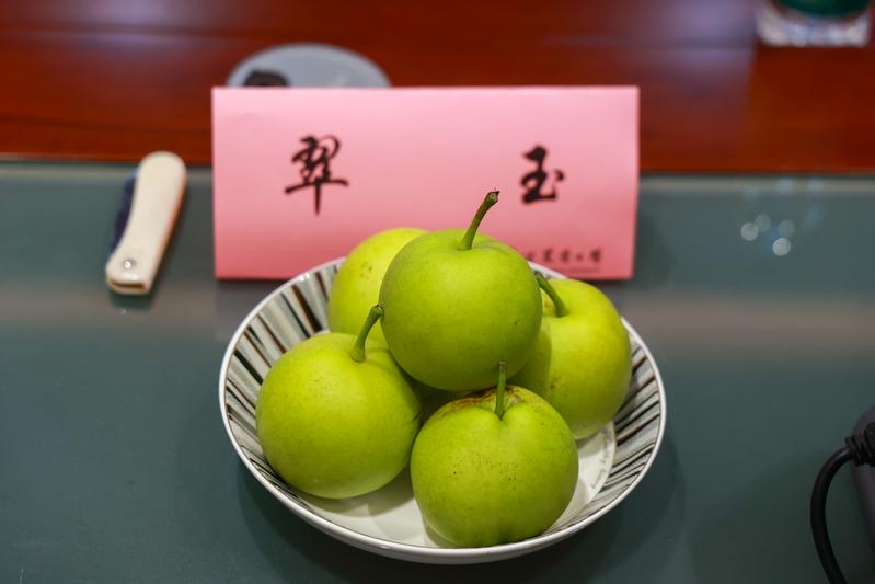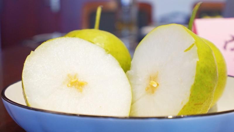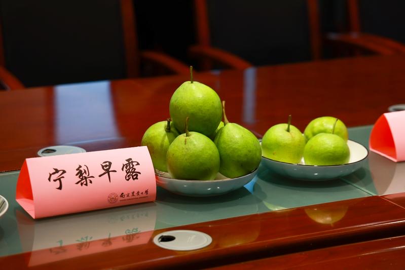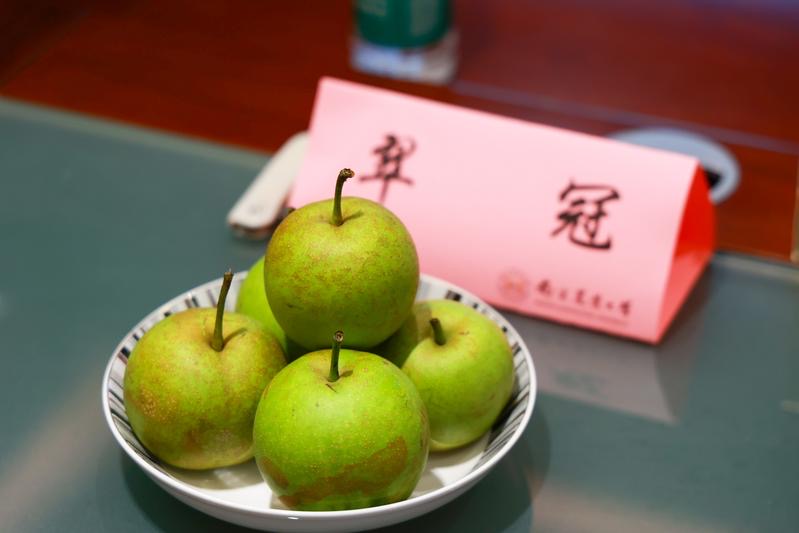 除了‘宁梨早露’,会上展示的‘宁早金’、‘宁晚翠’、红皮梨系列,都是万象城awcsport官网梨创新团队近年育成的新品“优等生”。