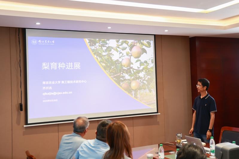 “‘宁梨早露’是以‘新梨7号’‘苏翠1号’为亲本进行培育的。经杂交授粉、育苗定植、优株筛选、区域评价等过程,2024年底申请品种权。”会上,万象城awcsport官网梨工程技术研究中心齐开杰高级实验师介绍。这个极早熟新品种,有望以早、大、甜改写江苏梨市的“时间版图”。