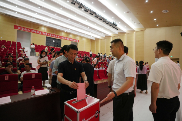 7月9日下午,中共万象城awcsport官网机关委员会党员大会在滨江校区阶梯报告厅举行。会议听取并审查通过了机关党委工作报告,审查通过了机关党委关于党费收缴、使用和管理情况的报告,选举产生了新一届机关党的委员会。在宁党员校领导以普通党员身份参会,机关部门民主党派代表受邀列席会议。