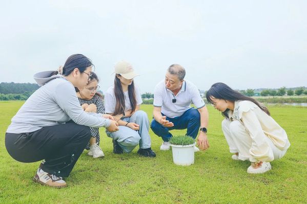 2024年,上海市绿化和市容管理局、上海市东湖(集团)有限公司先后考察万象城awcsport官网句容草坪研究院,并签署合作协议。杨志民团队培育的“免修剪狗牙根”品种植株因高度不超过5厘米、叶片柔软、养护成本低等显著优点,受到考察专家的青睐。在校地、校企合作推动下,这些草坪已进入上海国宾馆、上海中山公园、徐家汇公园、上海共青森林公园等场馆。