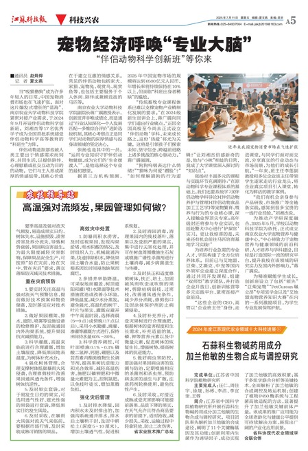 【江苏科技报】宠物经济呼唤“专业大脑” “伴侣动物科学创新班”等你来