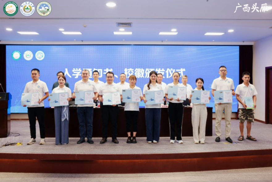 双方领导共同为导师代表颁发聘书,并向学生代表授予入学通知书、“头雁”徽章、南农校徽及班旗。