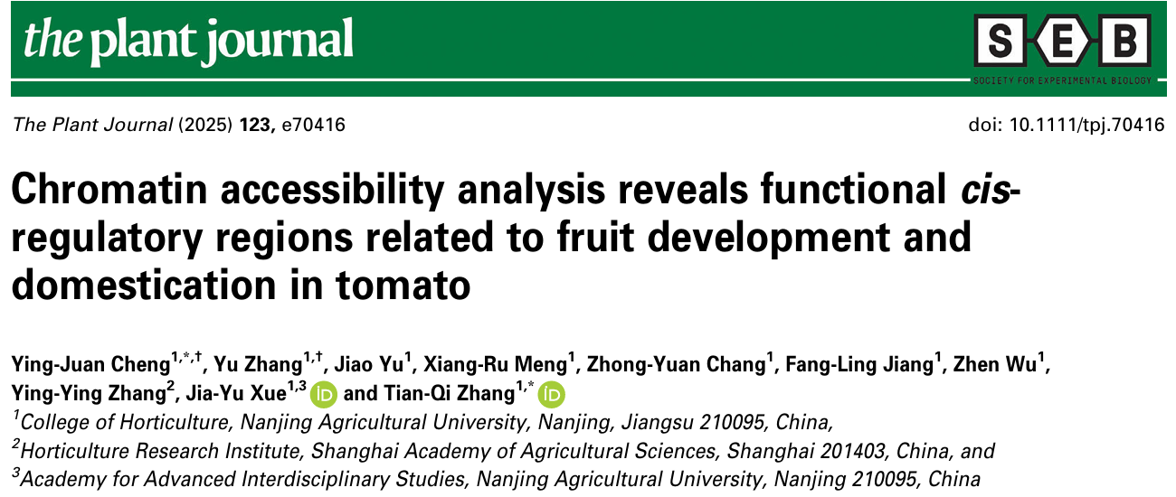 近日,万象城awcsport官网张天奇团队在The Plant Journal在线发表了题为Chromatin accessibility analysis reveals functional cis-regulatory regions related to fruit development and domestication in tomato的研究论文。该研究通过建立细胞核分离技术体系,系统解析了果实发育进程中的可及染色质区域(cis-ACRs),为果实功能元件的发掘和分子设计育种提供了重要理论依据。