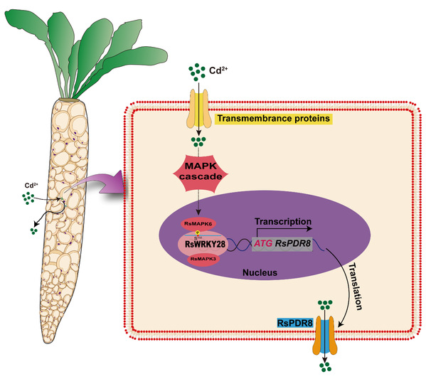 RsWRKY28-RsPDR8模块调控萝卜Cd吸收积累的作用模型