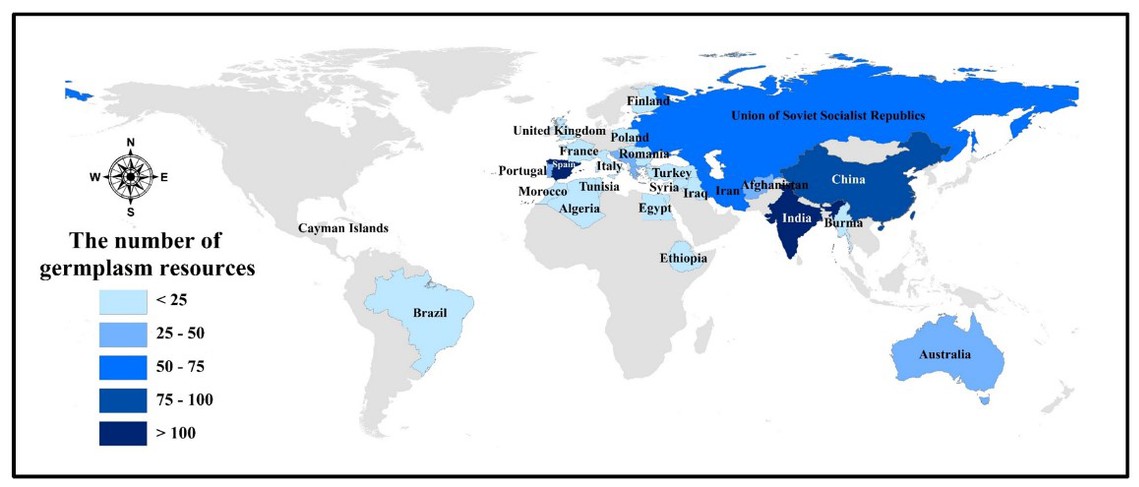 图1 A.E. Watkins品种起源全球分布图