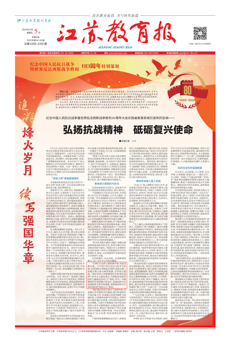 【江苏教育报】纪念中国人民抗日战争暨世界反法西斯战争胜利80周年大会在我省教育系统引发热烈反响—— 弘扬抗战精神 砥砺复兴使命