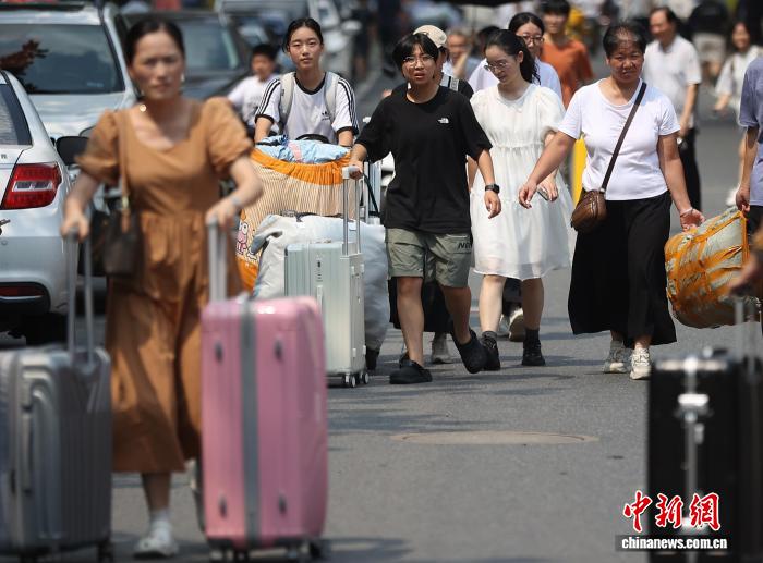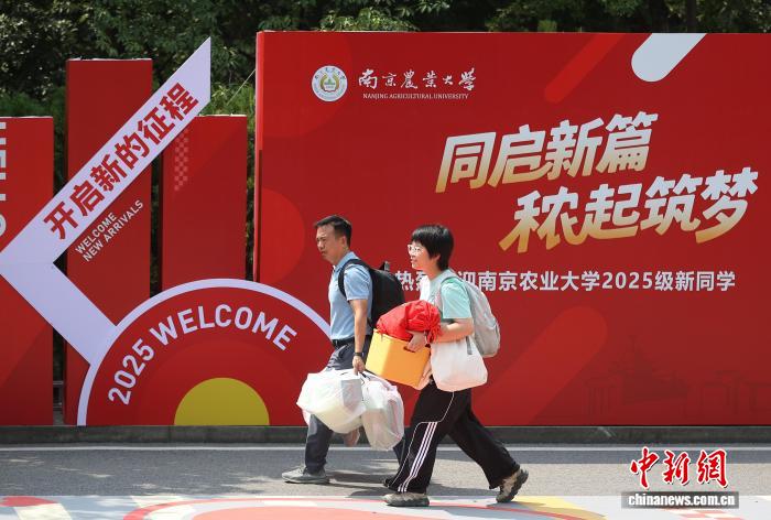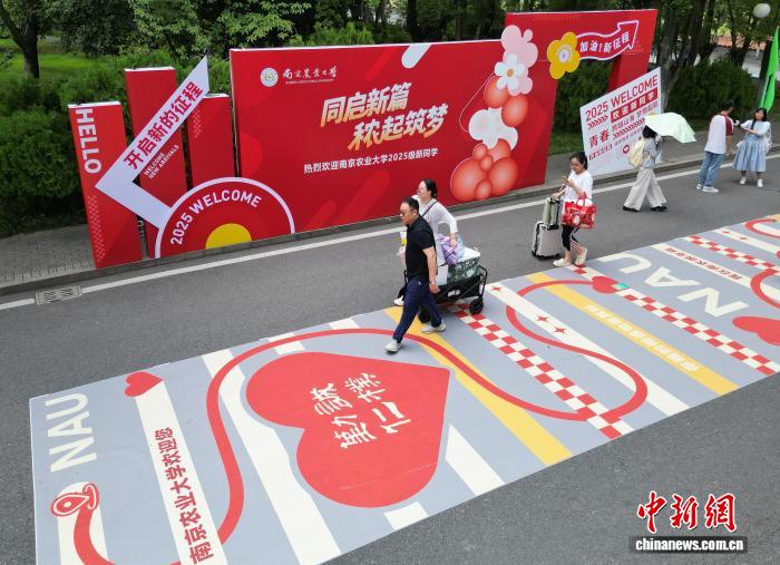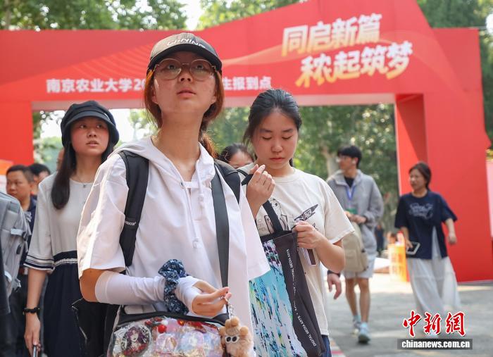 图为带着行李的新生走进校园。中新社记者 泱波 摄