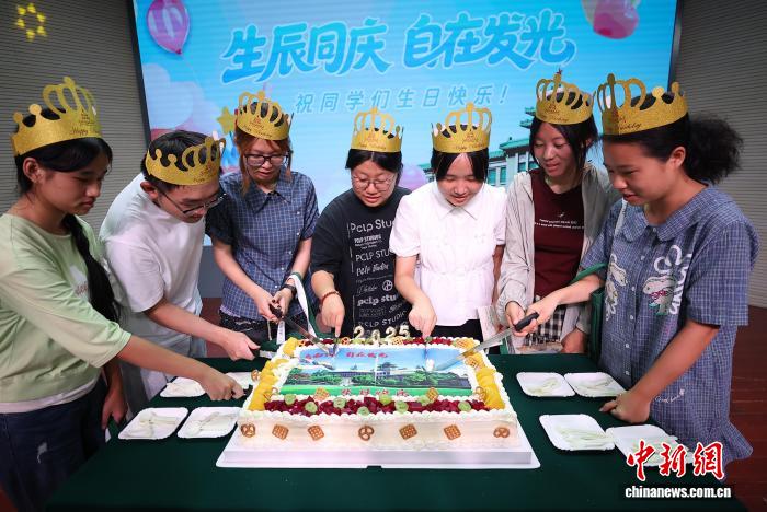 图为过生日的新生们切蛋糕。中新社记者 泱波 摄