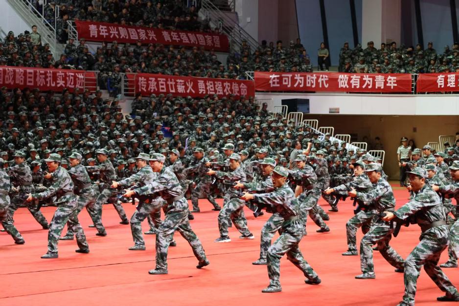 在军事科目汇报环节,参训学生依次进行了男生刺杀操、男生格斗术、女生军体拳和女生匕首操等展示,精彩纷呈的科目汇报将会场气氛推向高潮,看台上掌声雷动、喝彩不断。
