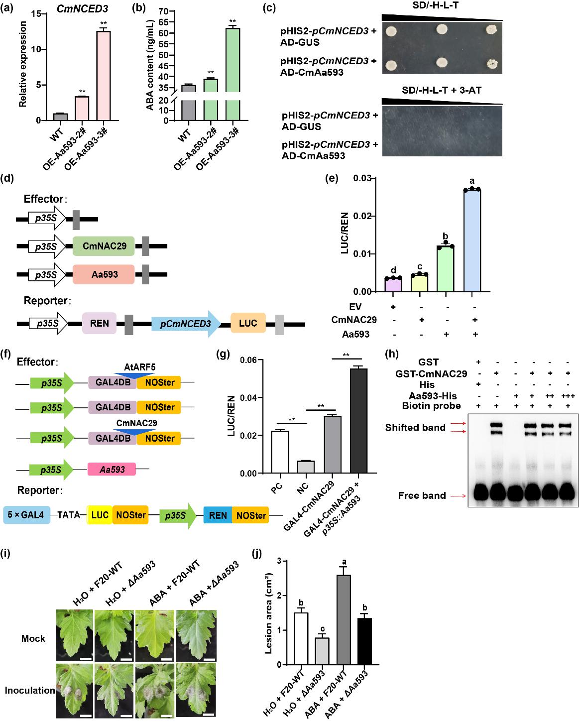 图2 Aa593劫持CmNAC29介导的ABA生物合成以增强菊花对A. alternata的敏感性