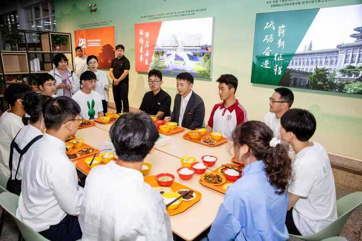 典礼结束后,校党委书记王春春与新生代表来到卫岗校区一食堂,师生围坐一堂,共享温馨的“开学第一餐”。餐桌上,大家一同品尝南农院士团队培育的金牌大米“宁香粳9号”,在袅袅饭香中畅谈交流,共话强国征程上新农人的使命担当。