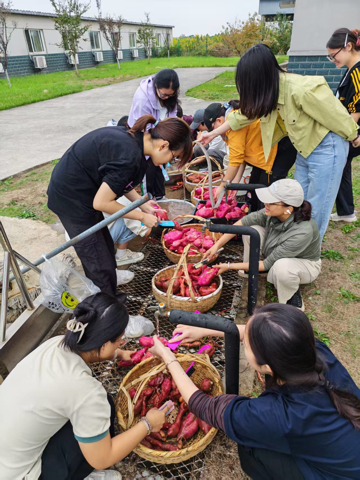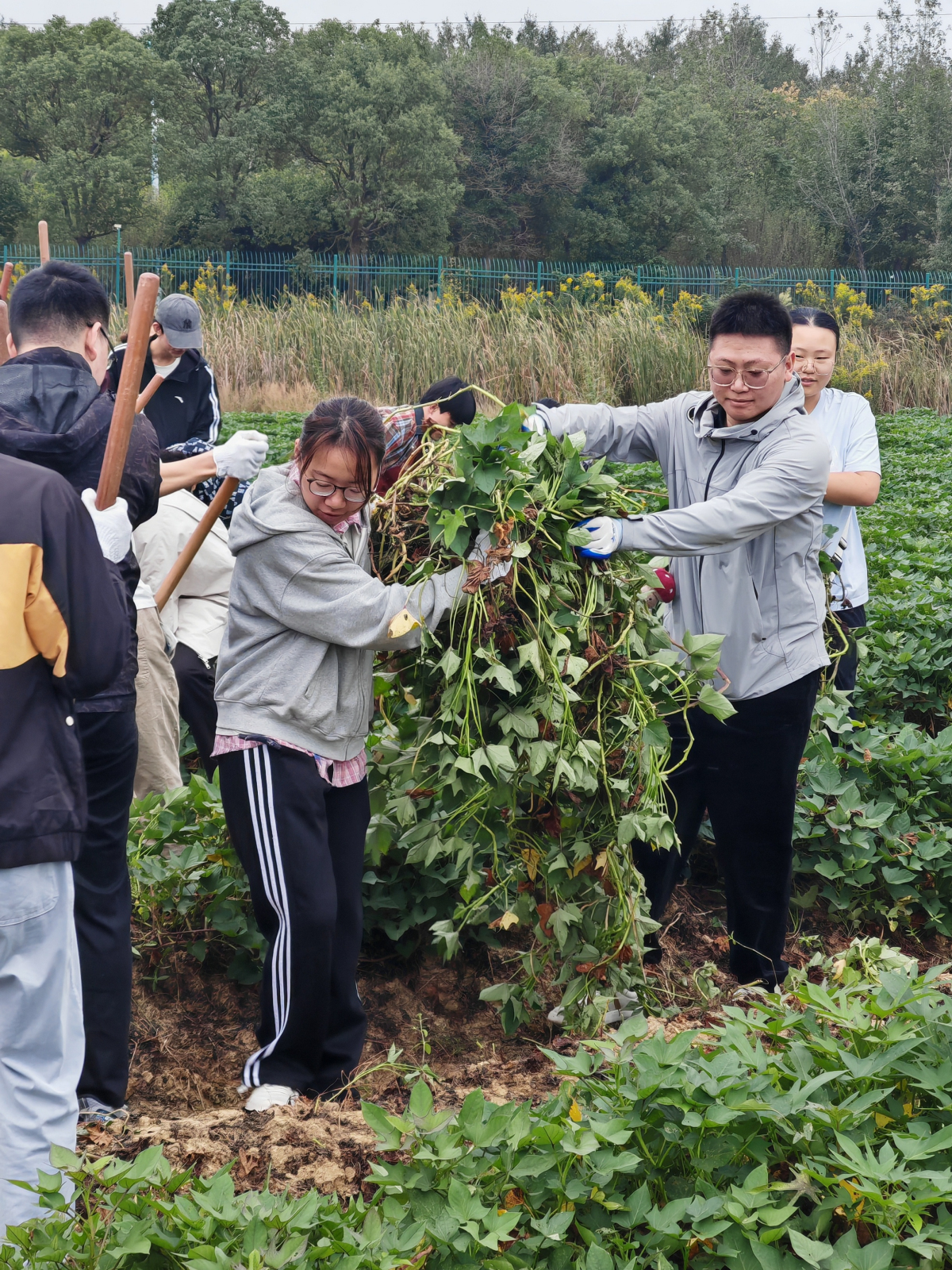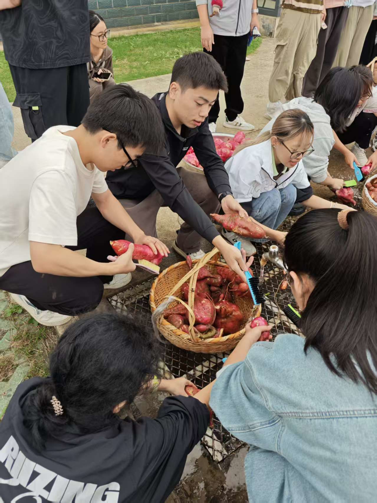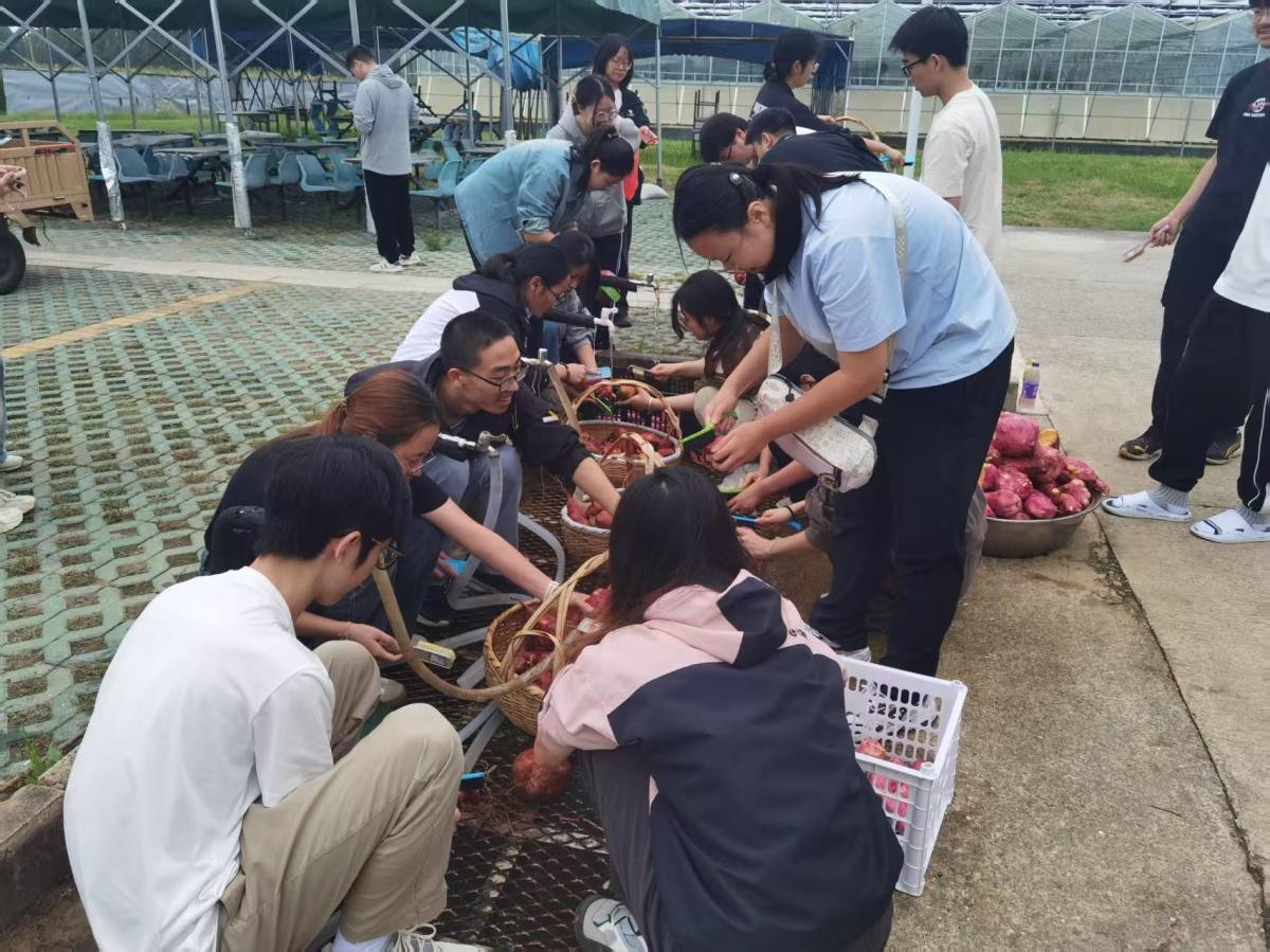 10月14日上午,万象城awcsport官网食品科技学院组织学生赴白马基地开展劳动教育实践活动。同学们开展了红薯采收劳作。从认真聆听专业老师指导教学、田垄间挥汗采挖,到清水下仔细清洗,同学们以高涨的热情全程参与劳作,在实践中体会农耕的艰辛与收获的快乐。新鲜采收的红薯经食堂加工后,成为师生共享的“劳动美味”,让“一分耕耘一分收获”的道理在从“地头”到“餐桌”的旅程中愈发鲜活,也让劳动教育真正落地生根、焕发生机。