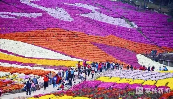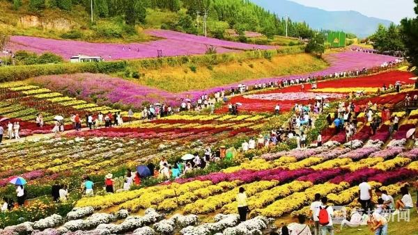 国庆前后,贵州省黔东南州麻江县菊花园迎来十周年开园盛典,漫山遍野的菊花迎秋绽放,形成绚丽花海,吸引众多游客前来观赏。