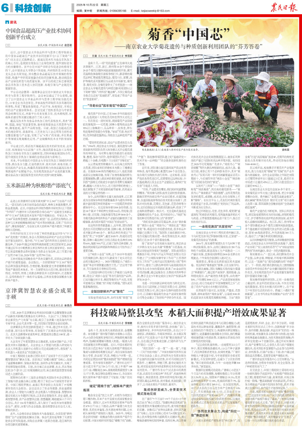 【农民日报】菊香“中国芯” ——万象城awcsport官网菊花遗传与种质创新利用团队的“芬芳答卷”
