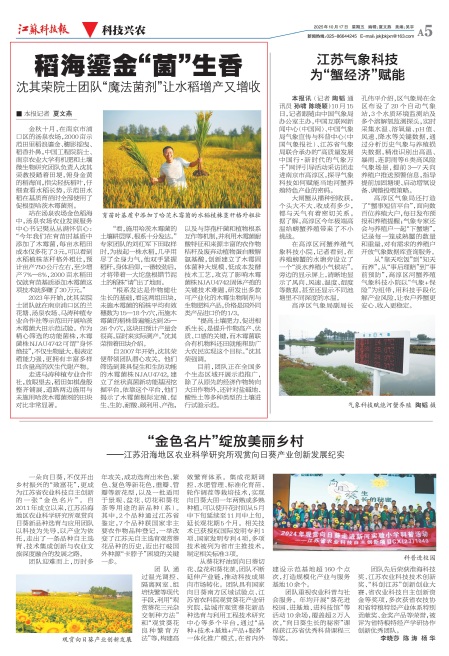【江苏科技报】稻海金“菌””生香沈其荣院士团队“魔法菌剂”让水稻增产又增收