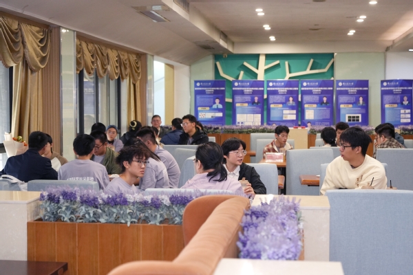 生命科学学院院长蒋建东汇报拔尖基地建设情况,介绍“三制三化”培养模式,即书院制、导师制、学分制结合小班化、国际化、个性化,通过夯实基础、学科交叉、“4+5”本博贯通等举措,打造拔尖人才培养特区。会后,师生移步图书馆1902共享空间,开展自由交流与学术海报展示。拔尖基地班同学就科研方向、课程选择及未来规划与特聘导师深入探讨,导师们耐心解答、悉心指导,现场氛围轻松融洽。