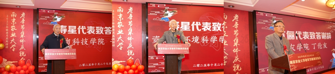 农学院丁伦友作为伉俪代表致答谢辞,并分享了多年来与爱人相濡以沫、携手同行的幸福生活,他感谢学校为他们提供了良好的平台和关怀,让他们能够在退休后依然感受到集体的温暖。
