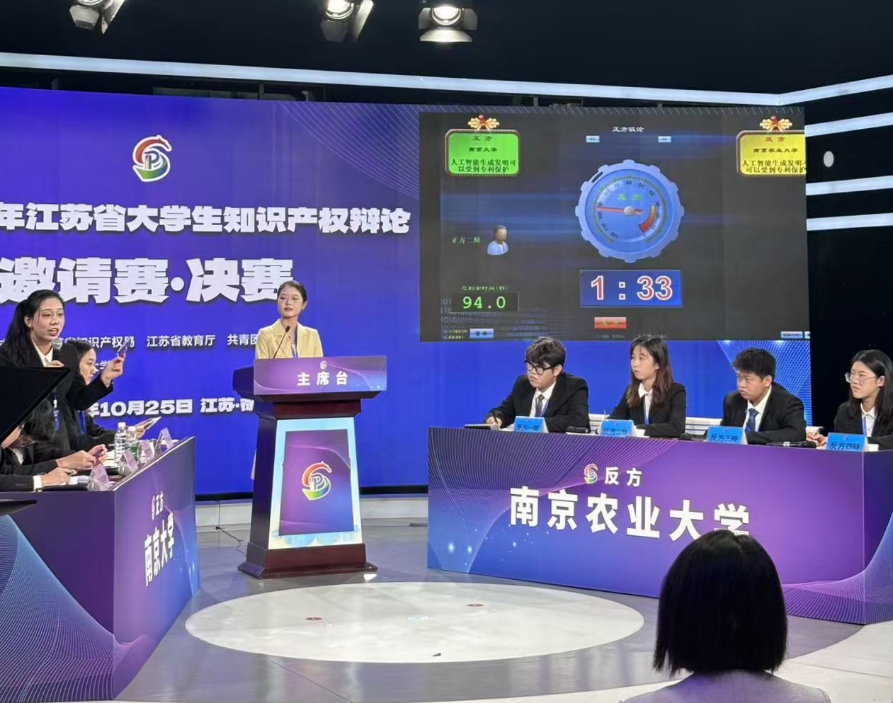 10月25日,由江苏省知识产权局、江苏省教育厅、共青团江苏省委主办的首届江苏省大学生知识产权辩论邀请赛决赛在徐州举行。本次大赛以“燃辩青春·知创未来”为主题,吸引了全省24所高校代表队参赛。万象城人文学院董书源、高可欣、齐子豪、仝馨叶子,智慧农业学院(人工智能学院)李思言,公管学院张博涯,植保学院欧阳宇同,信息管理学院张翡宸等8位同学组成的代表队,凭借出色表现斩获大赛亚军,李思言同学荣获“最佳辩手”称号,校办施晓琳、邹爱萍老师荣获“优秀指导老师奖”,学校同时获评“优秀组织奖”。