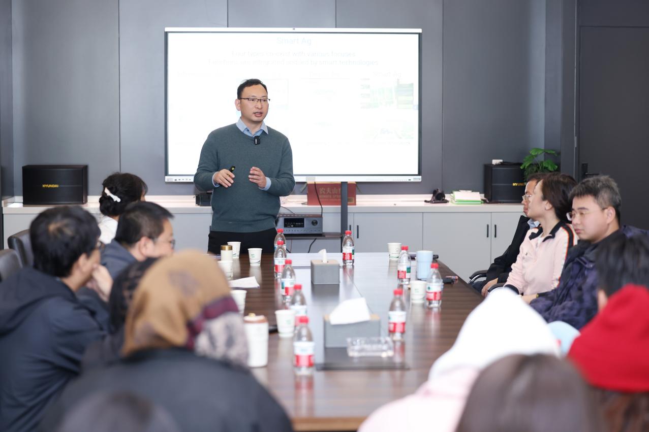 神农智慧农业研究院院长汤亮教授带来智慧农业科普讲座。汤亮系统介绍了智慧农业的核心技术和装备,以及这些技术装备在提升农业生产效能方面的应用,他结合实际案例,分享了智慧农业技术在促进资源节约、推动绿色发展方面的显著优势。