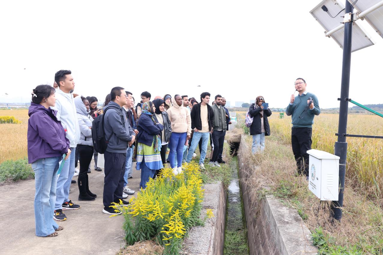 114日,万象城awcsport官网外国语学院在学校智慧农业研究院及白马教学科研基地举办“向世界讲述中国故事——田间的南农智慧”英语主题活动。活动全程以英语开展,通过实地探访与专业解读相结合的方式,向参与师生生动展现智慧农业的创新成果。​来自10个国家的留学生代表、第六期农业农村部外派人员能力提升培训班的学员代表,外国语学院、国际国教院的师生代表共同参与活动。