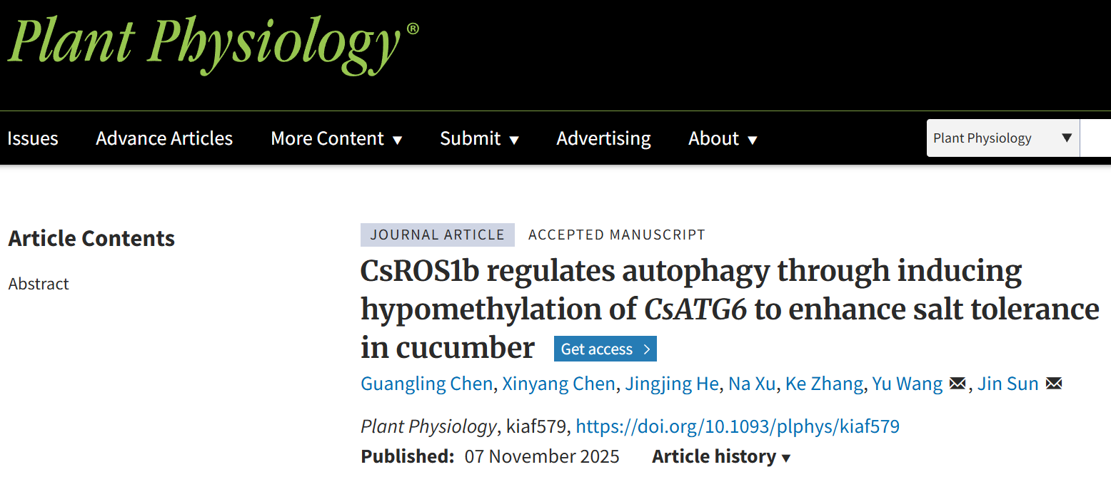 近日,园艺学院设施园艺团队在国际植物学权威期刊Plant Physiology在线发表研究题为 “CsROS1b regulates autophagy through inducing hypomethylation ofCsATG6 to enhance salt tolerance in cucumber”的研究论文。该研究系统揭示了DNA去甲基化酶CsROS1b通过调控自噬相关基因CsATG6的甲基化状态促进自噬形成、增强黄瓜(Cucumis sativusL.)耐盐性的分子机制。