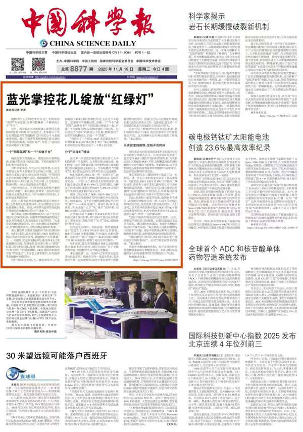 【中国科学报】蓝光掌控花儿绽放“红绿灯”