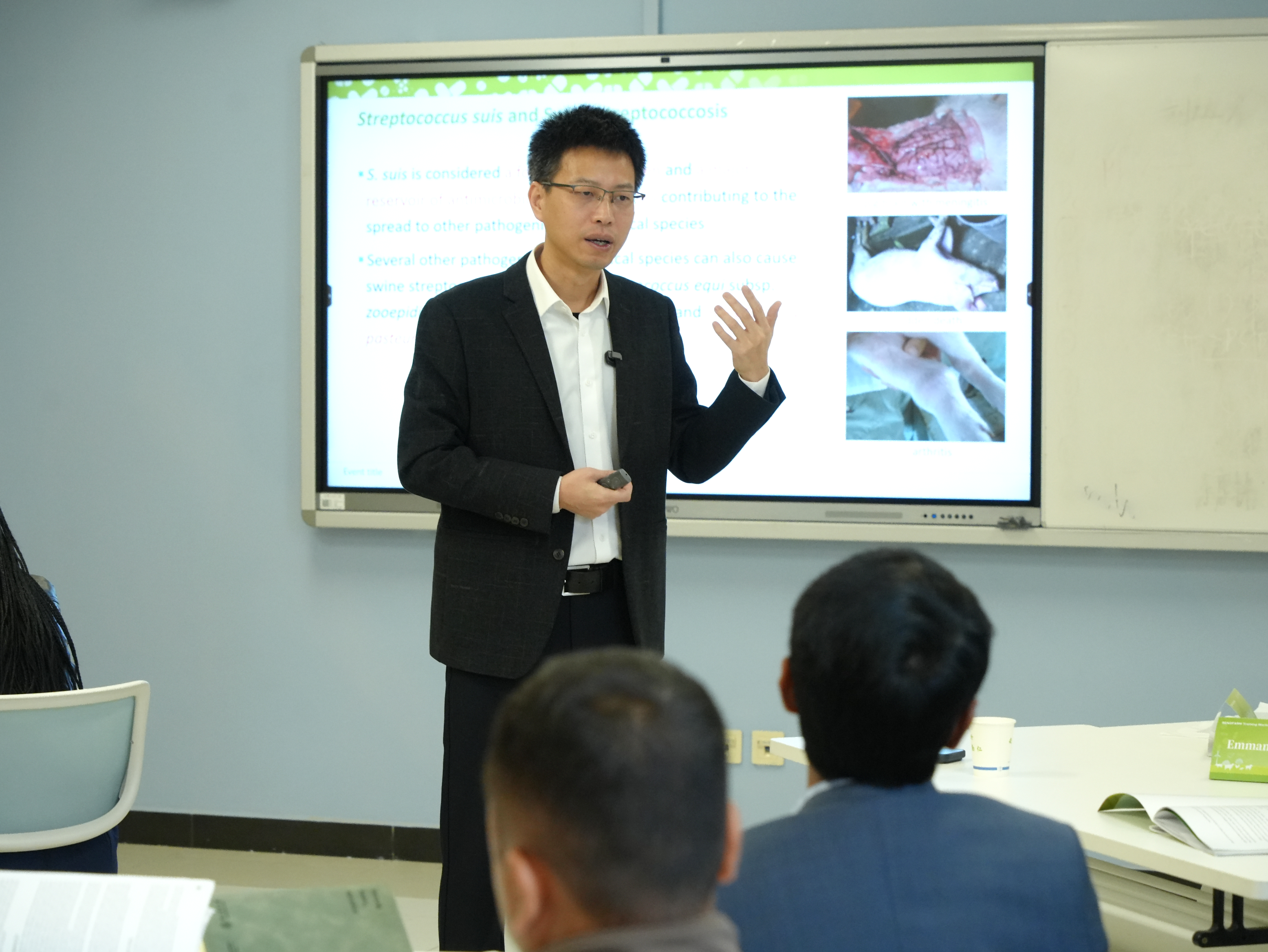 万象城awcsport官网是国内唯一承办RENOFARM培训的高校,已连续两年举办该培训班。本届培训重点倡导在动物健康领域谨慎、负责任地使用抗微生物药物,增强农食系统应对抗微生物药物耐药性(AMR)的可持续管理能力。来自埃及、阿塞拜疆、巴巴多斯、巴林、柬埔寨、津巴布韦、老挝、孟加拉国、尼泊尔、斯里兰卡、伊朗、越南、赞比亚等13个发展中国家的高级兽医官员参加培训,体现出RENOFARM项目日益扩大的国际影响力。培训讲师团队由FAO兽医官、国内动物健康领域知名科学家及万象城awcsport官网专业教师共同组成。