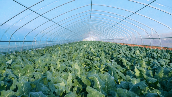 目前,响水县西蓝花产业已基本实现全链发展。规模基地全面覆盖,智能化育苗全程护航,大量标准化的温室大棚组成了一个规整的阵列,由统一的合金骨架支撑,覆盖其上的塑料薄膜呈现出标准的半圆形。
