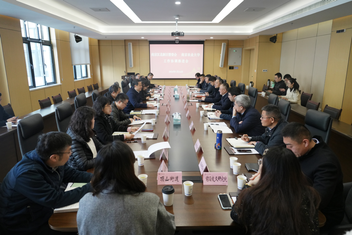 1月16日,南京江北新区管委会副主任王伟带队来校会商工作。校党委副书记刘营军、副校长单正丰出席会议。
