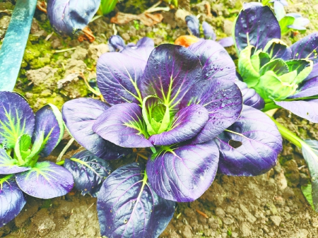 在南京溧水区七彩蔬果农民专业合作社的基地里,成片的“紫秀丽006”叶片呈深紫色,如花瓣般舒展。其紫色来源于丰富的花青素,营养价值突出。李英指出,该品种不仅好看好吃,还具有生长快、产量高、抗逆性强等优点,于2023年被评为“南京市最优青菜品种”。
