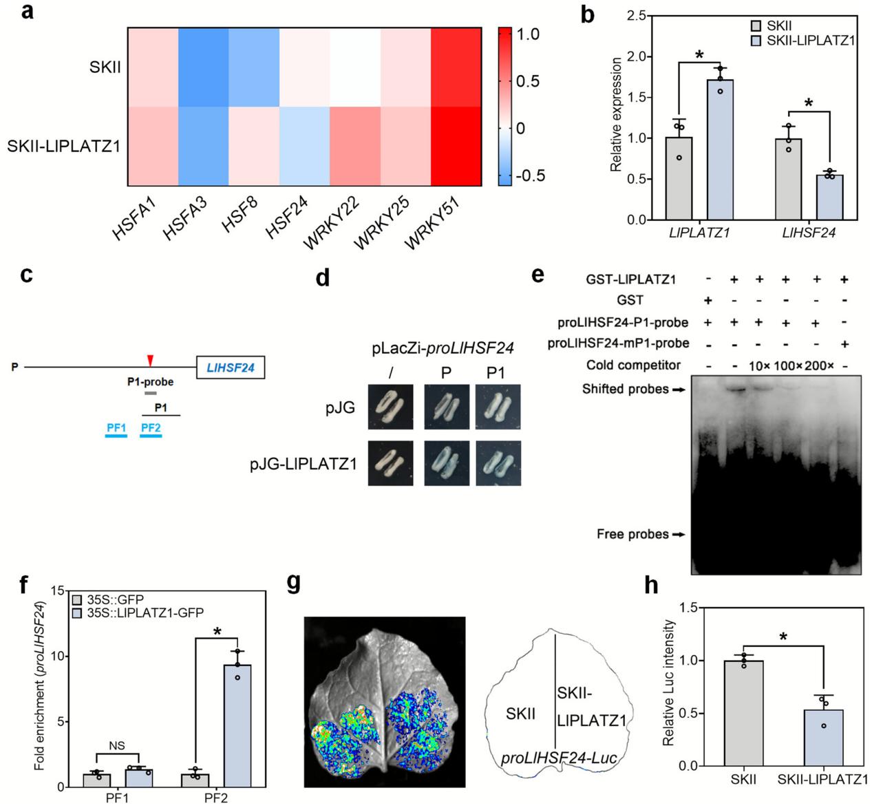 LlPLATZ1结合LlHSF24的启动子并抑制其表达