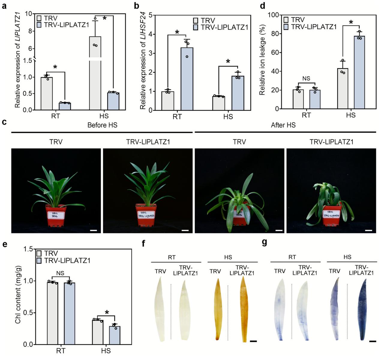VIGS介导的LlPLATZ1沉默百合植株耐热性分析