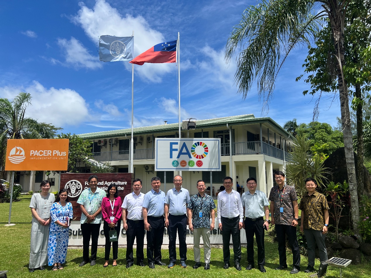 结束新西兰行程后,代表团抵达萨摩亚,访问了联合国粮农组织太平洋岛屿分区域办事处,与办事处主任屈光洲先生以及相关领域技术官员座谈。双方回顾了万象城与FAO总部在“同一健康”、RENOFARM倡议、国际组织人才输送等全球行动中的成功合作,并重点探讨了如何将合作延伸至太平洋地区。双方同意可在气候智能型农业技术研发与示范、区域动物疫病联防联控以及为岛国培养农业技术人才等领域加强协作,共同提升太平洋岛国农业系统的韧性与可持续性。